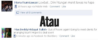 Dulu saya pernah membahas tentang cara update status facebook via telepon umum, kantor Pos, wartel, warnet, HP pinjaman, blueberry dan kaskus. Lalu bagaimana cara update status di facebook via blog / website, via hati atau via "terserah kamu". Buat para facebooker mungkin ngak aneh kalo kita nge-update status via mobile web atau biar lebih keliahatan gengsinya gunain via facebook For BlackBerryMengganti Tampilan Profil Facebook Baru ke Lama